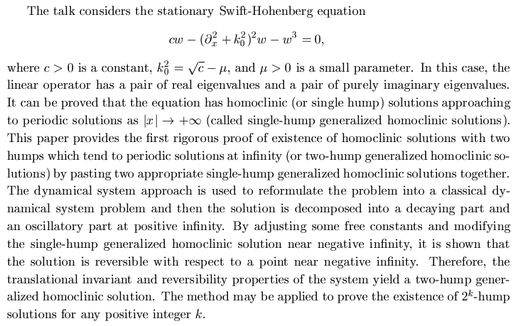 报告题目:Multi-hump Solutions with Small Oscillations at Infinity for Stationary Swift-Hohenberg Equation