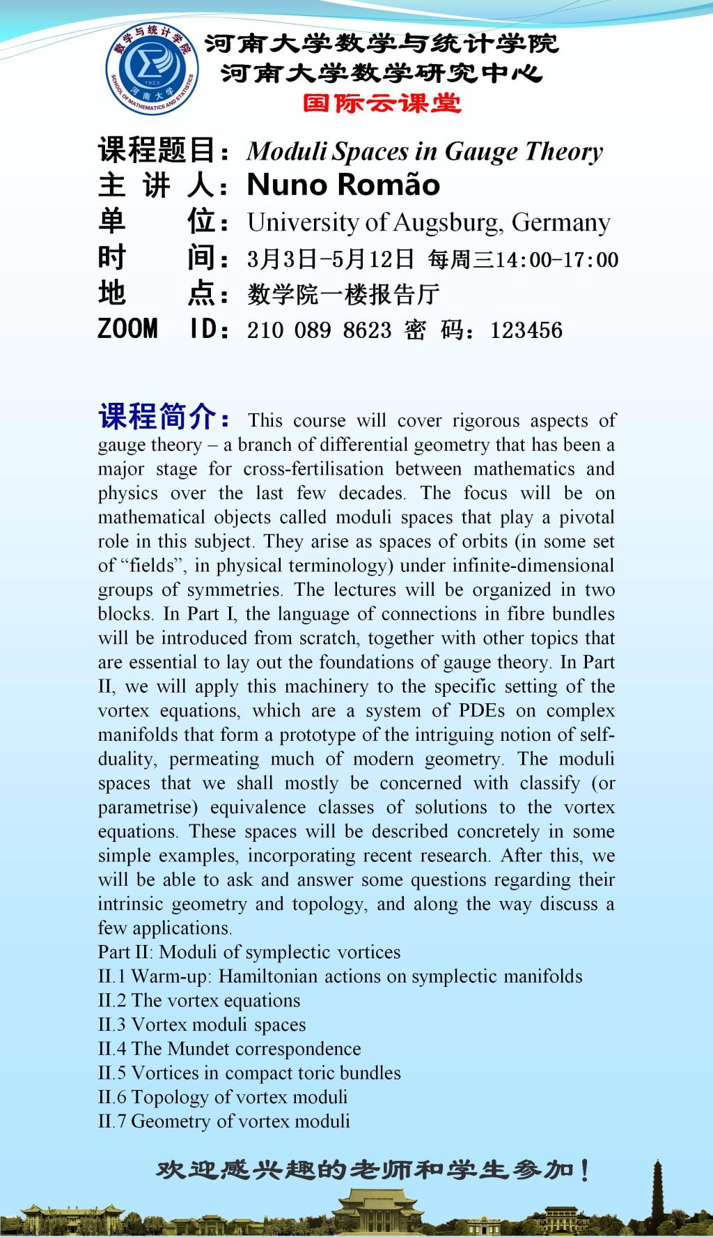bwin官网国际云课堂“Moduli Spaces in Gauge Theory”