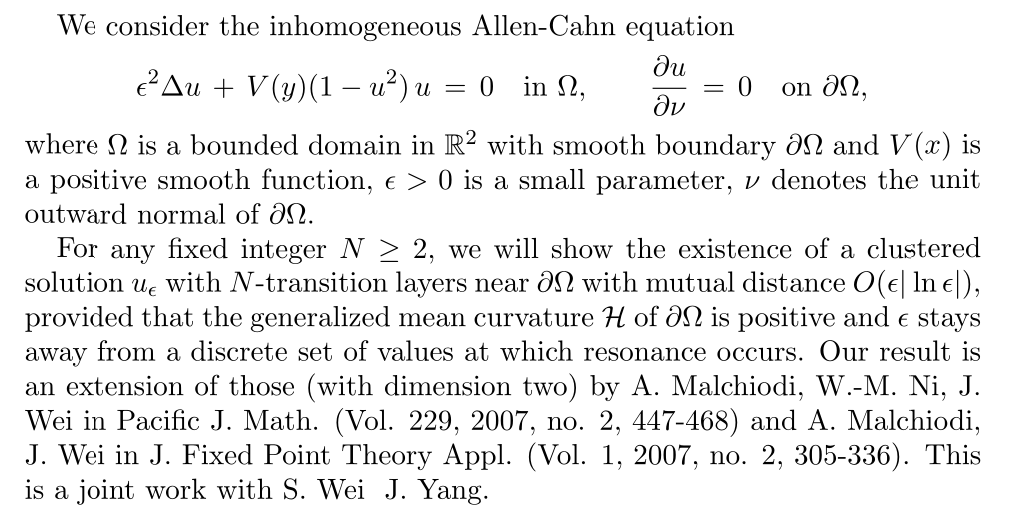 报告题目:Clustering of Boundary Interfaces for an Inhomogeneous Allen-Cahn Equation on a Smooth Bounded Domain