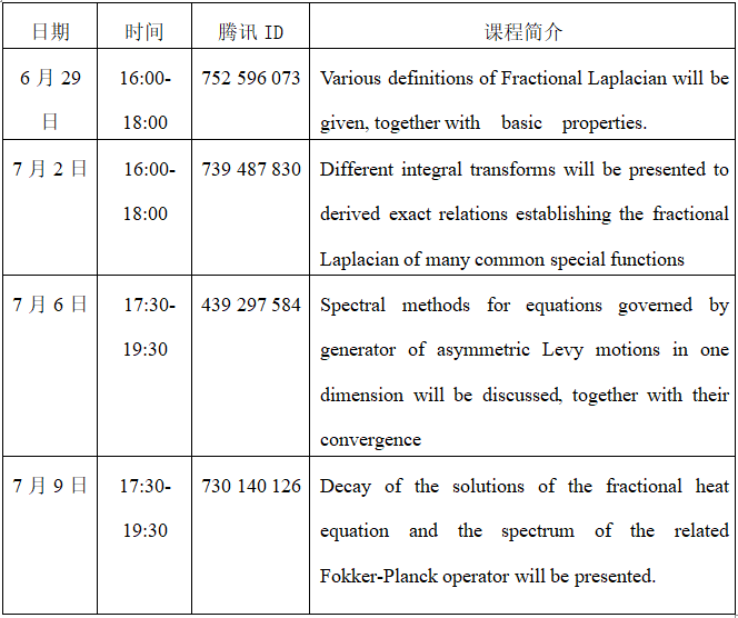 课程题目:Fractional Laplaican: Introduction and a few Related Topics