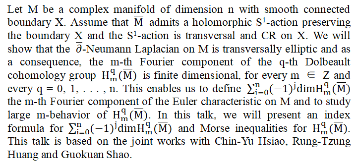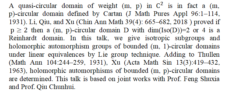 会议题目:2021年bwin必赢复分析与复几何研讨会议