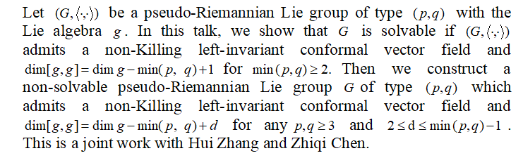 Left-invariant conformal vector fields on non-solvable Lie groups |