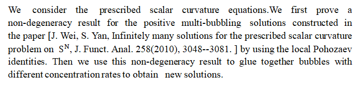报告题目:Non-degeneracy of Multi-bubbling Solutions for the Prescribed Scalar Curvature Equations and Applications