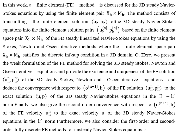 何银年,西安交通大学bwin官网二级教授,博士生导师,享受政府津贴专家,新疆大学“天山学者”讲座教授。曾担任陕西省计算数学学会理事长,陕西省数学学会常务理事,全国计算数学学会常务理事等。长期从事有关N-S方程组, MHD方程组及海洋流体动力学模型的有限元方法的理论和算法研究。连续主持国家自然科学基金7项,部分研究成果获2007年“国家自然科学奖二等奖”(第五完成人),2011年“教育部自然科学奖二等奖”(独立完成),2016年“陕西省科学技术奖一等奖”(第一完成人)。 在国内外杂志发表SCI文章240篇,在SIAM J. Numer Anal, SIAM J. Sci Comp, Numer Math, Math Comp, J Comp. Phys., Comput Methods Appl Mech Engrg,IMA J. Numer Analysis, Int J. Numer Methods Engrg等计算数学类期刊上发表文章31篇。
