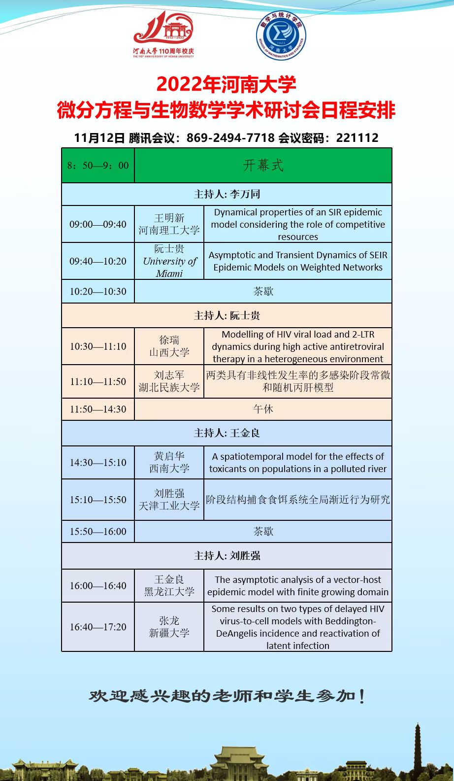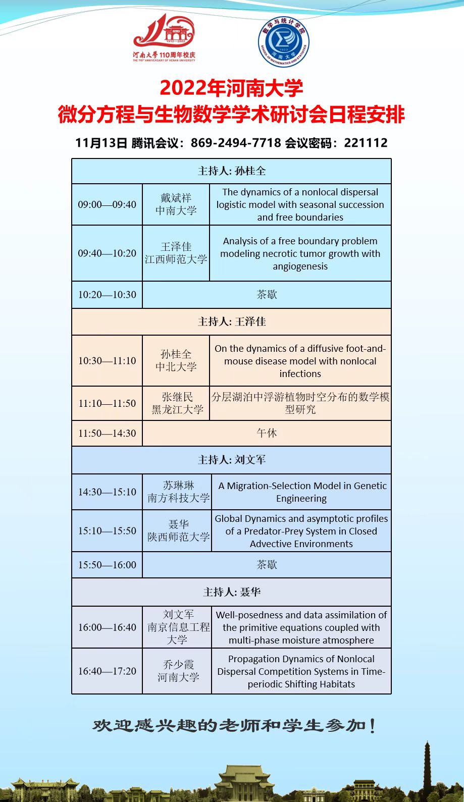 2022年bwin必赢微分方程与生物数学学术研讨会日程安排