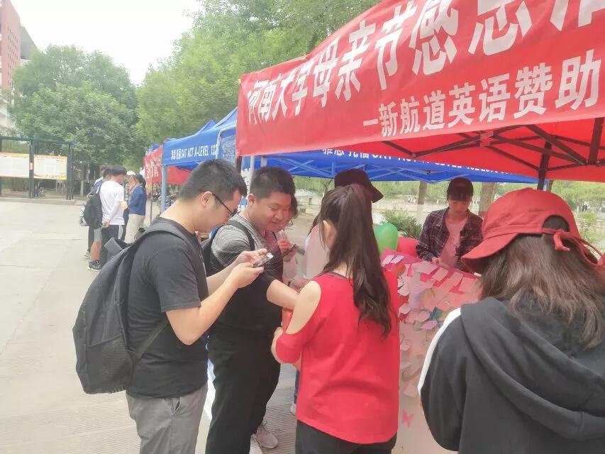上午一早,青协部分成员于综合楼前支起摊位,活动进入预热阶段。下课的员工陆陆续续来到摊位前,有的拿起签字笔在便利贴上写下对妈妈以及祖国母亲真切的祝福,有的掏出手机立即给自己的妈妈发去一条祝福短信,一时间,摊位被围得水泄不通。傍晚,忙碌了一天的青协成员再次支起摊位,越来越多的同学了解并参与到本次活动。周六,活动逐渐进入白热化阶段,同学们纷纷为自己心灵的港湾送去最美的祝福。活动最后一天进入收官阶段,同学们的热情让人依依不舍,期待明年再见!