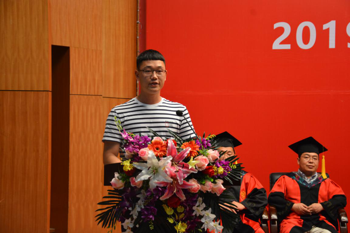 院员工会主席、2016级员工杨彬代表在校生通过分享“羡慕”、“感谢”、“祝福”、“回家”四个词向即将离开母校的毕业生送上最热烈的祝贺、最真诚的感谢及最诚挚的祝福,并承诺以学长学姐为榜样,用优异成绩和实际行动回馈母校。