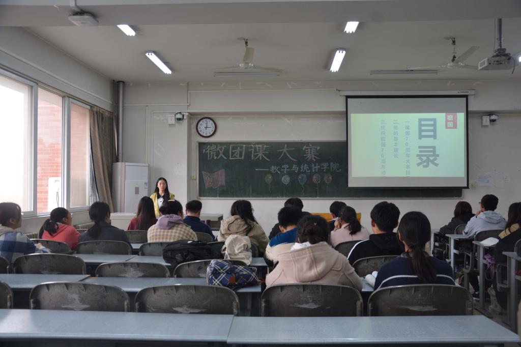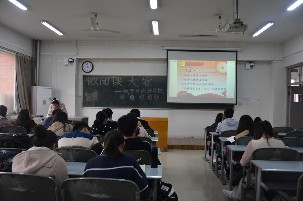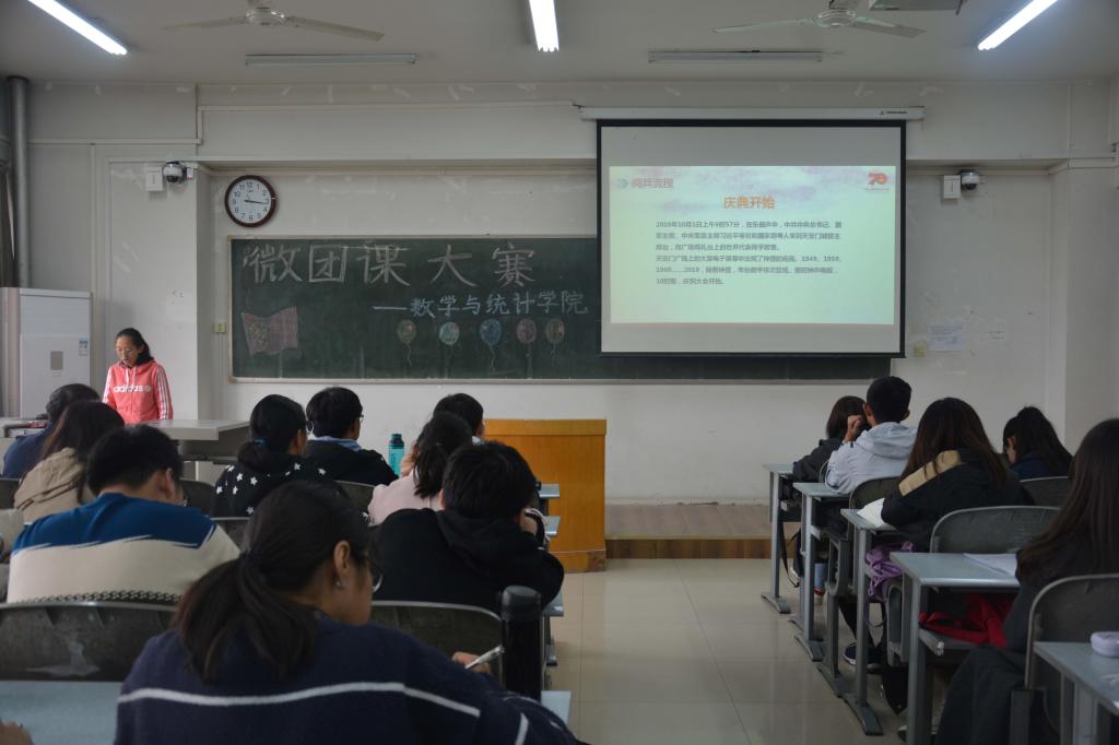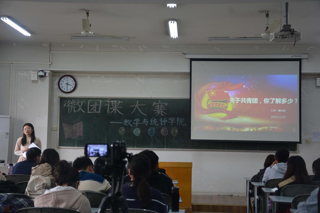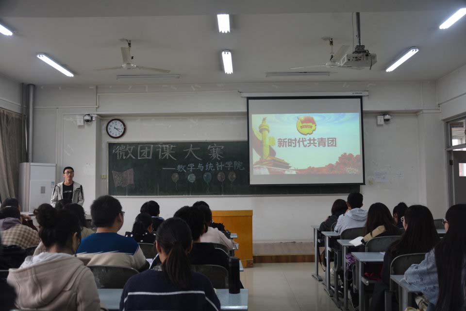 11月7日下午,学院员工团干部在7304教室集中观看了“微团课”大赛初赛展示,参赛的五位团支书分别是来自2017级数学与应用数学(实验班)专业的王裕斐、2018级信息与计算科学专业的陈艳晓、2018级统计学专业黄林微、2019级统计学专业姚翔上、2019级金融数学专业郭铭萱。比赛由2018级羌准准主持。