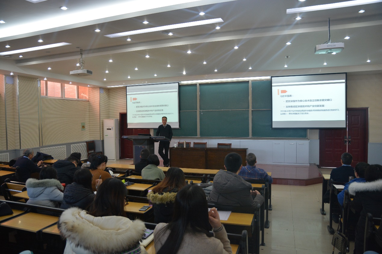 12月27日上午,陕西师范大学杨波教授受邀在bwin官网二楼北阶梯教室做了题为“区块链技术基本原理及应用”的学术报告。bwin官网及部分兄弟学院的相关师生参加了本次讲座。