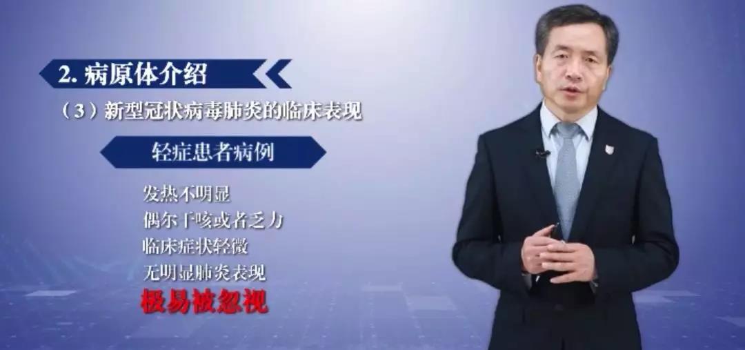 从目前收治的病例情况看,多数患者预后良好,少数患者病情危重,死亡病例多见于老年人和有慢性基础疾病患者。当然,也有一些轻症病例,发热不明显,偶尔干咳或者乏力,临床症状轻微,无明显肺炎表现,极易被忽视。特别是无症状感染者更是给防控工作带来挑战。