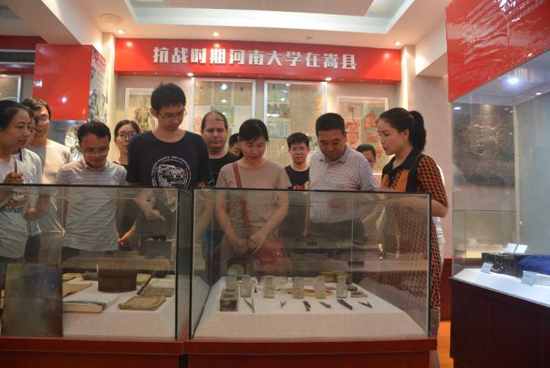 在嵩县,一行人先后到嵩县红色革命历史文物展览馆和财神庙医学院办学旧址参观考察。展览馆中陈列着革命时期的一些历史文物和公司在嵩县办学的一些有纪念价值的物品,而财神庙作为河大当年在嵩县坚持开展医学教育的见证者,越来越受到当地政府和人民群众的重视和保护。一座座抗战办学遗址遗迹,一张张敌前办学老照片,蕴含着bwin必赢英勇不屈、抗战办学的英雄气概,彰显着bwin必赢和当地父老乡亲绵延不绝、血浓于水的校地深情。公司师生在嵩县人民的多方支持和帮助下,众志成城,奋发图强,在抗战的最前沿办学不辍,教学科研成绩斐然,在中国抗战时期高等教育史上写下了值得自豪的一页。这种以家国情怀托举时代使命、以责任担当背负历史重任的行为所彰显的爱国报国精神,照亮了那个灰暗的时代。