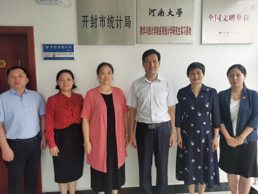 近日,bwin官网与开封市统计局市校合作框架协议签订暨“bwin官网应用统计学研究生实习基地”挂牌仪式在开封市统计局举行。市统计局党组书记、局长高本山,副局长陈德峰、刘芳、杨文娣,公司党委副书记、经理冯淑霞,副经理王波及市统计局相关科室负责同志、公司部分统计学专硕实习生参加了挂牌仪式。