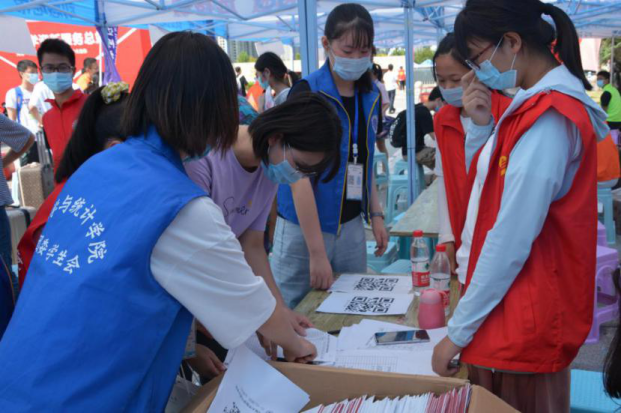 烈日炎炎,校门外却一直有迎新团队的身影,保证每一位数院新生都能及时得到积极地迎接与帮助。因疫情原因,员工家长不能进入校园,于是2019级的学长学姐们给“小20”们当起了哥哥姐姐,进校门、迎新站点报到、办理入学手续、宿舍入住,每一个流程都有迎新人员的陪伴与帮助。报到时发放的新生物品袋中,有学长学姐们精心准备的矿泉水、小扇子、学校地图和新生手册等小物品,温馨又实用。迎新“一条龙”式服务,使得家长放心,员工安心,也让新生们能更快地接受校园生活,融入到“河大”这个大家庭中来。