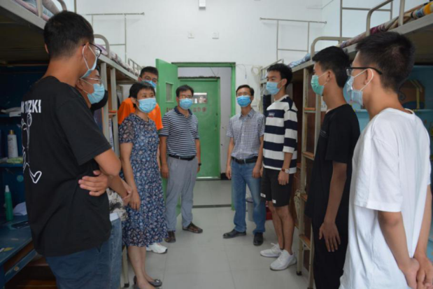 9月12日下午,公司党委书记史富强、经理冯淑霞带领学院迎新工作小组来到新生宿舍慰问新生。史书记风趣幽默,与同学们愉快地交谈新学期感受,很快拉近了与同学们的距离,他最后强调,新学期要认真学习,不能被游戏及其他琐事影响。冯经理平易近人,她查看了宿舍条件,并嘱咐同学间要互帮互助,多交流沟通,与家长勤联系,以缓解思乡情。