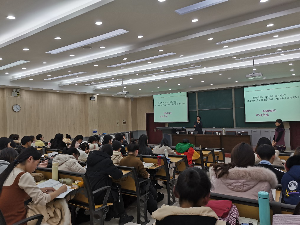 为进一步提高数学与应用数学专业师范生的公司产品能力,12月17日下午,bwin官网邀请85级员工、中国教育学会中学数学教学专业委员会理事、河南省基础教研室中学数学教研员、特级教师刘志凤老师,在学院二楼南阶梯教室作《基于评价标准谈教师的学科素养》的主题报告,报告会由数学教育专业学科带头人张玉环老师主持。