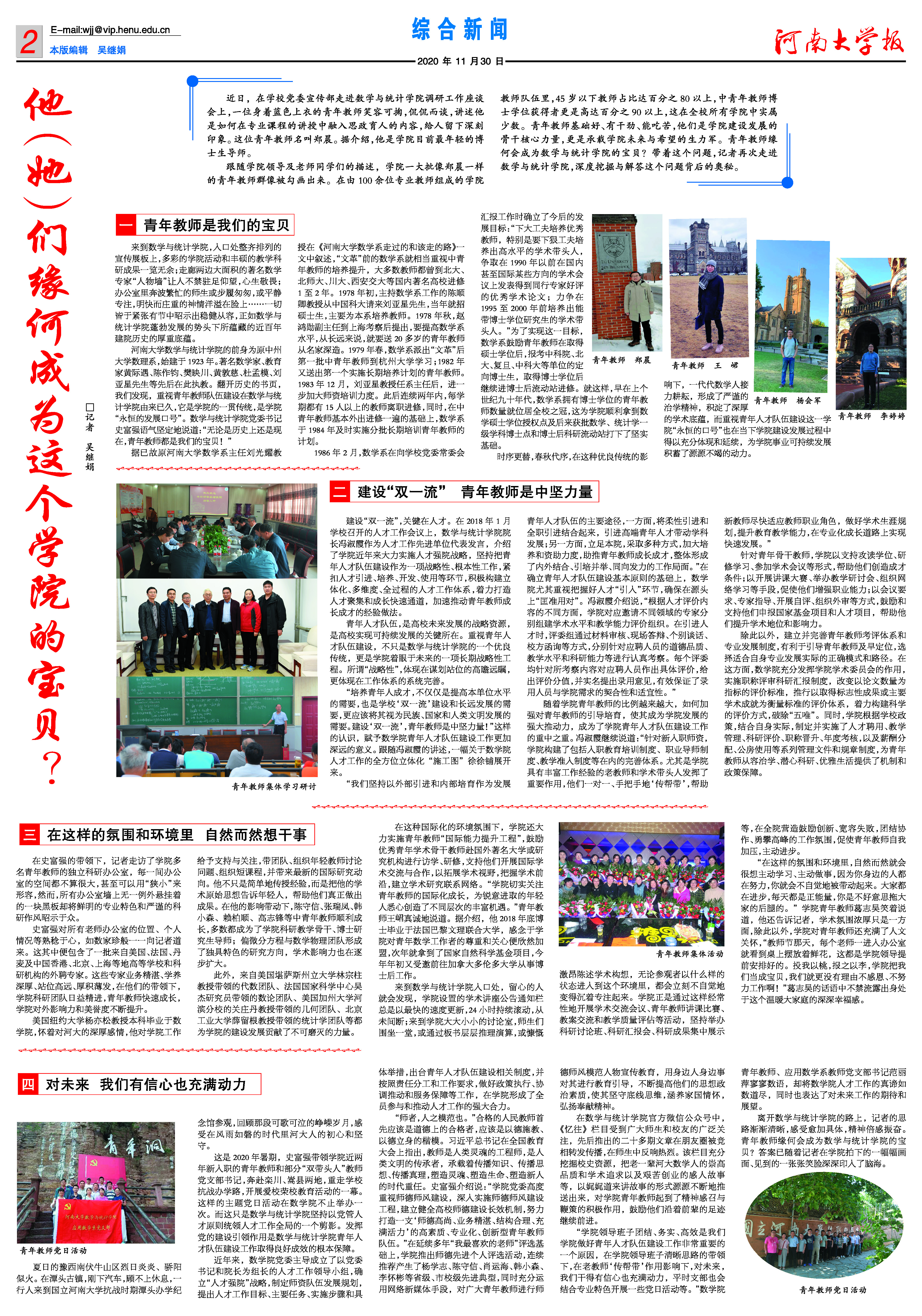 时序更替,春秋代序,在这种优良传统的影响下,一代代数学人接力耕耘,形成了严谨的治学精神,积淀了深厚的学术底蕴,而重视青年人才队伍建设这一学院“永恒的口号”也在当下学院建设发展过程中得以充分体现和延续,为学院事业可持续发展积蓄了源源不竭的动力。