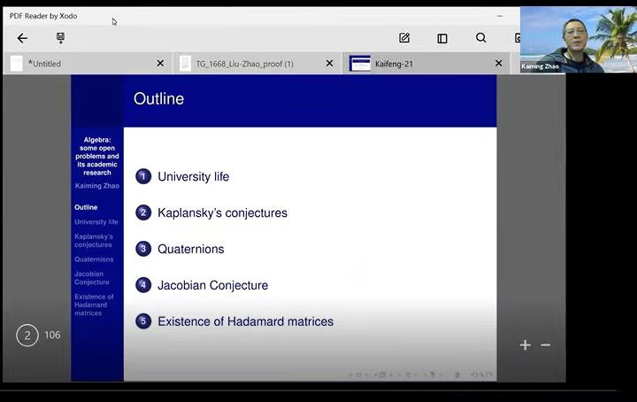 赵开明教授讲授《Algebra: some open problems and its academic research》