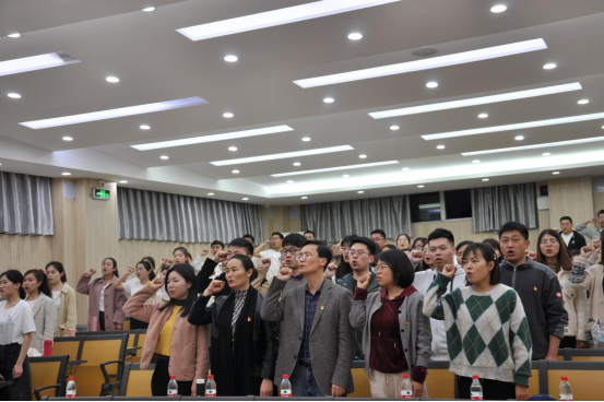 3月25日晚上,bwin官网研究生党支部在学院南阶教室开展“爱国爱党 ”主题红歌比赛。赛前,罗勍带领全体人员重温入党誓词。