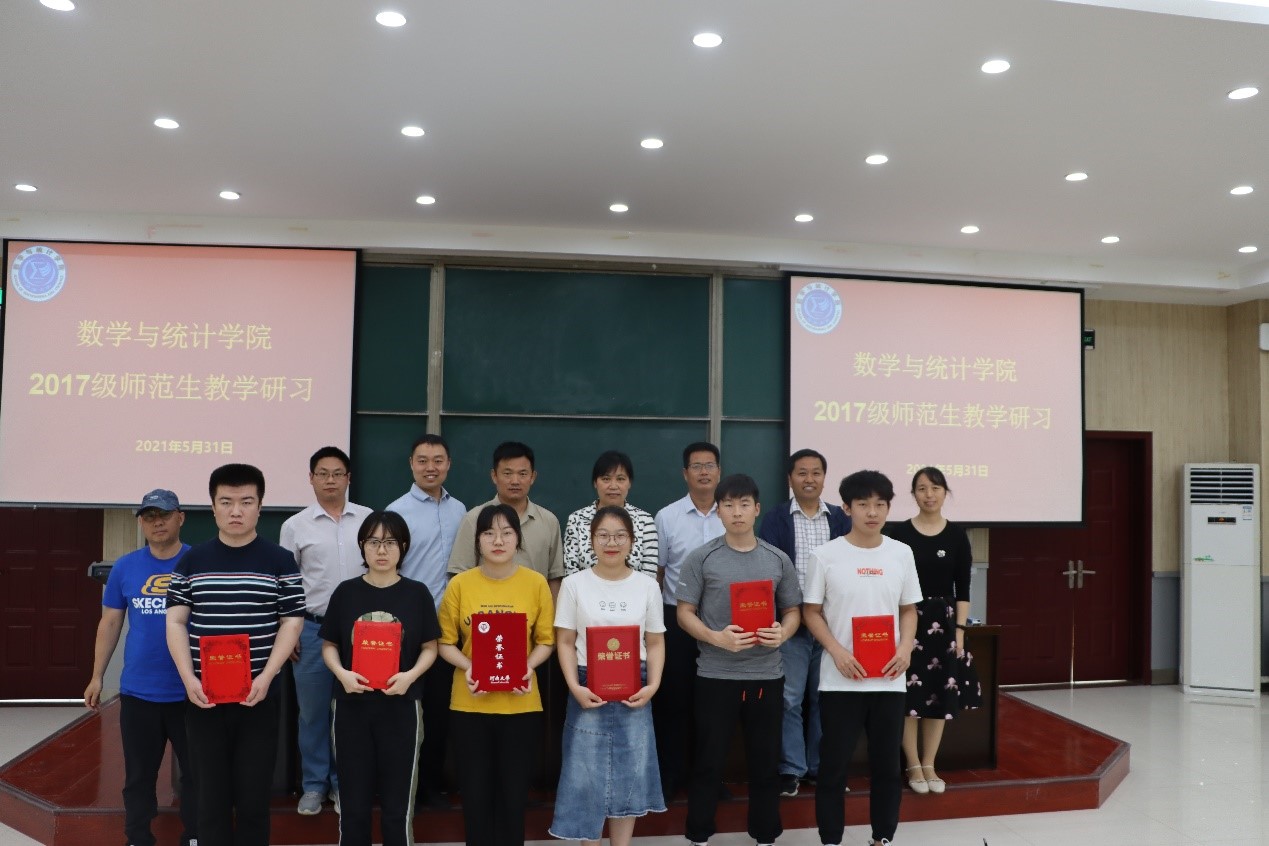 最后,经过评委老师的投票,梁笑笑同学荣获一等奖,李甜、赵东旭同学荣获二等奖,朱宣姝、侯奉科、侯晨煜同学荣获三等奖。参会老师为各位获奖同学颁发证书并合影留念。