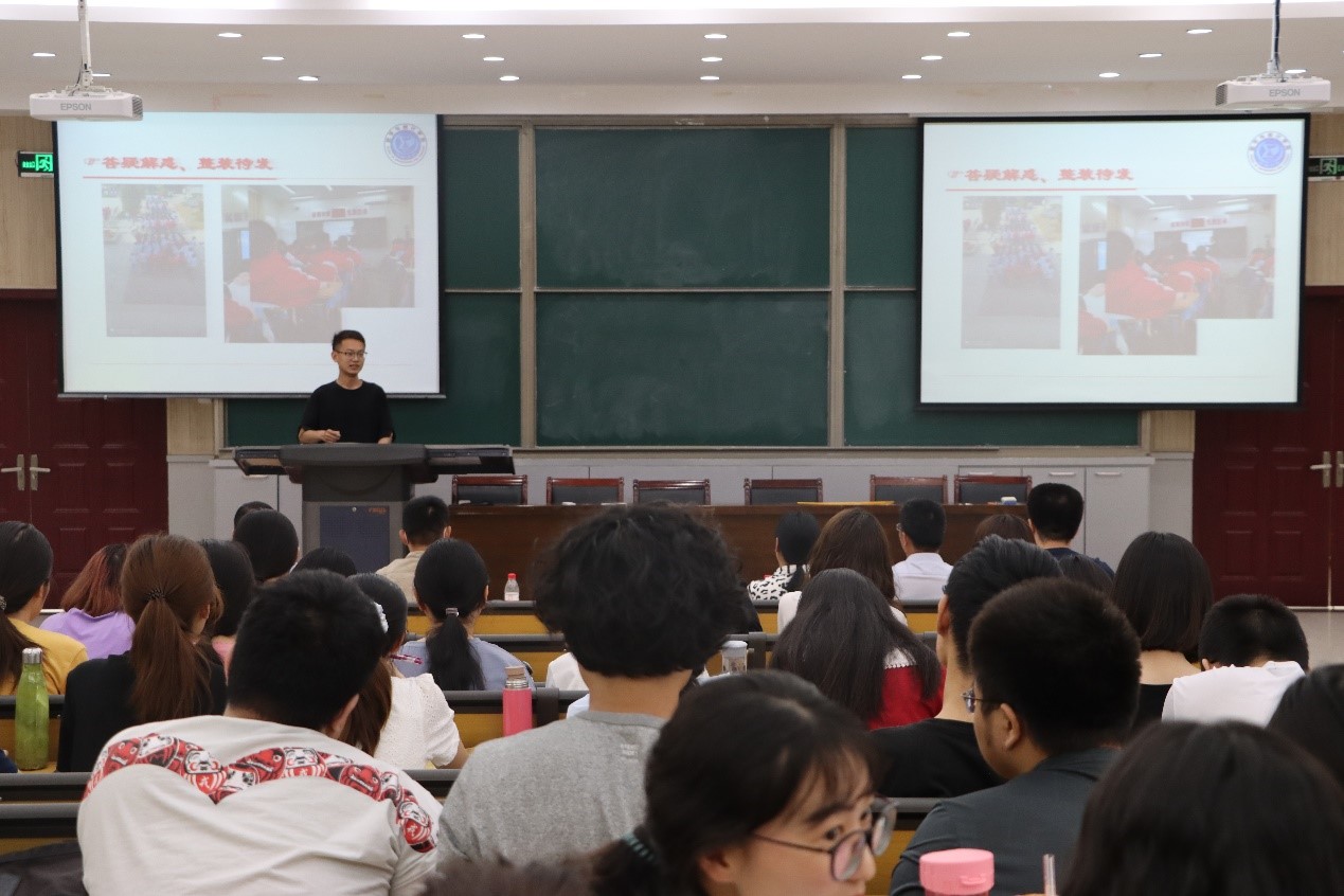本次活动由四个环节组成。首先,学院2017级集中派遣教育实习的六个小组负责人分别汇报了各小组成员到中学开展教育实习,返校后在校内开展研习活动的总体情况,通过PPT展示了各小组实习活动开展的图片和活动记录,并重点介绍了实习和研习工作的收获和体会。