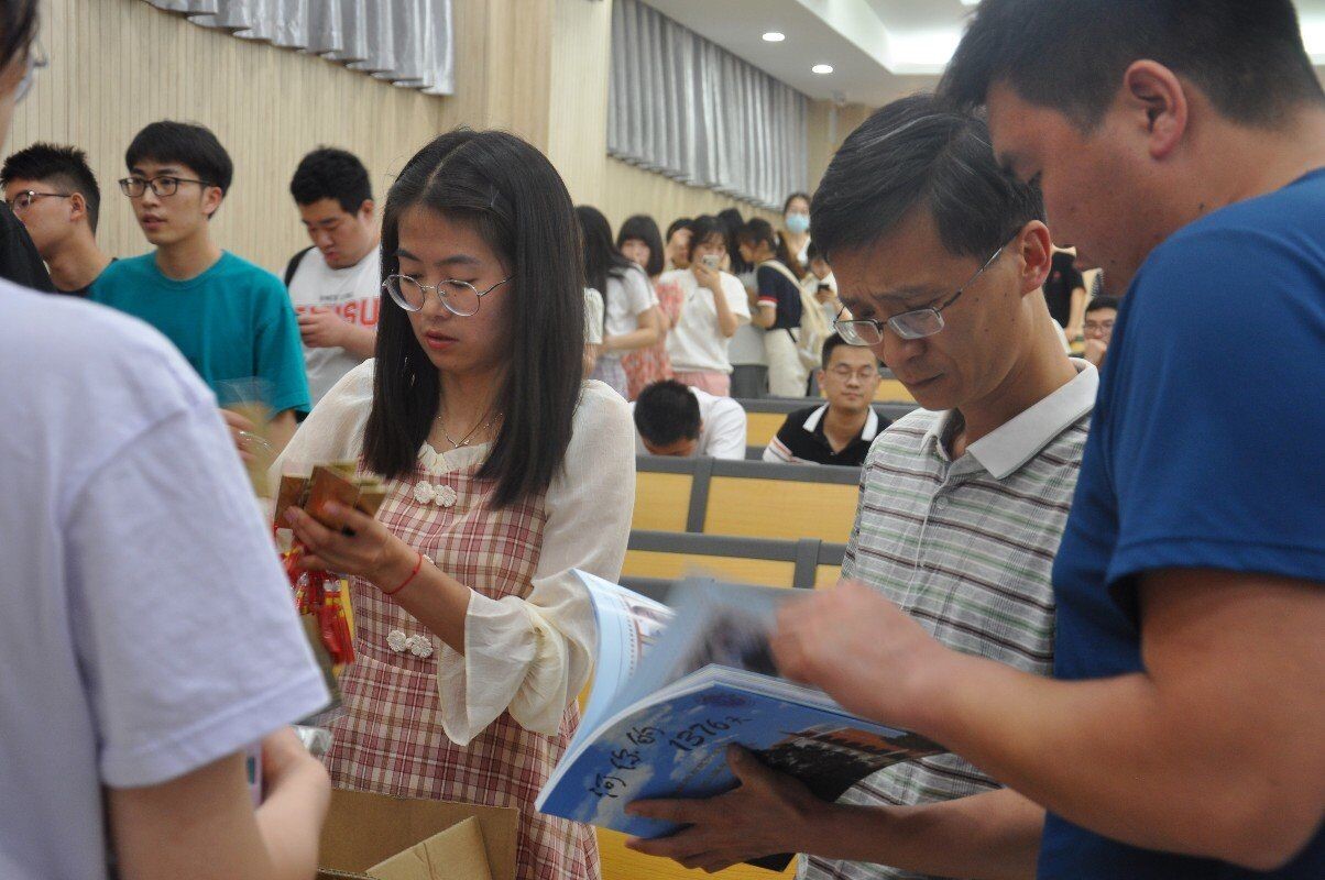2021届本科毕业生们以人民币一元为起点,有序地排队献出自己的爱心,进行捐款并签名合影留念。公司党委副书记赵红磊、2017级辅导员安其丰莅临现场,为活动做指导。随后,两位老师代表学院为他们分发纪念册、纪念章、书签、帆布包等小礼品。