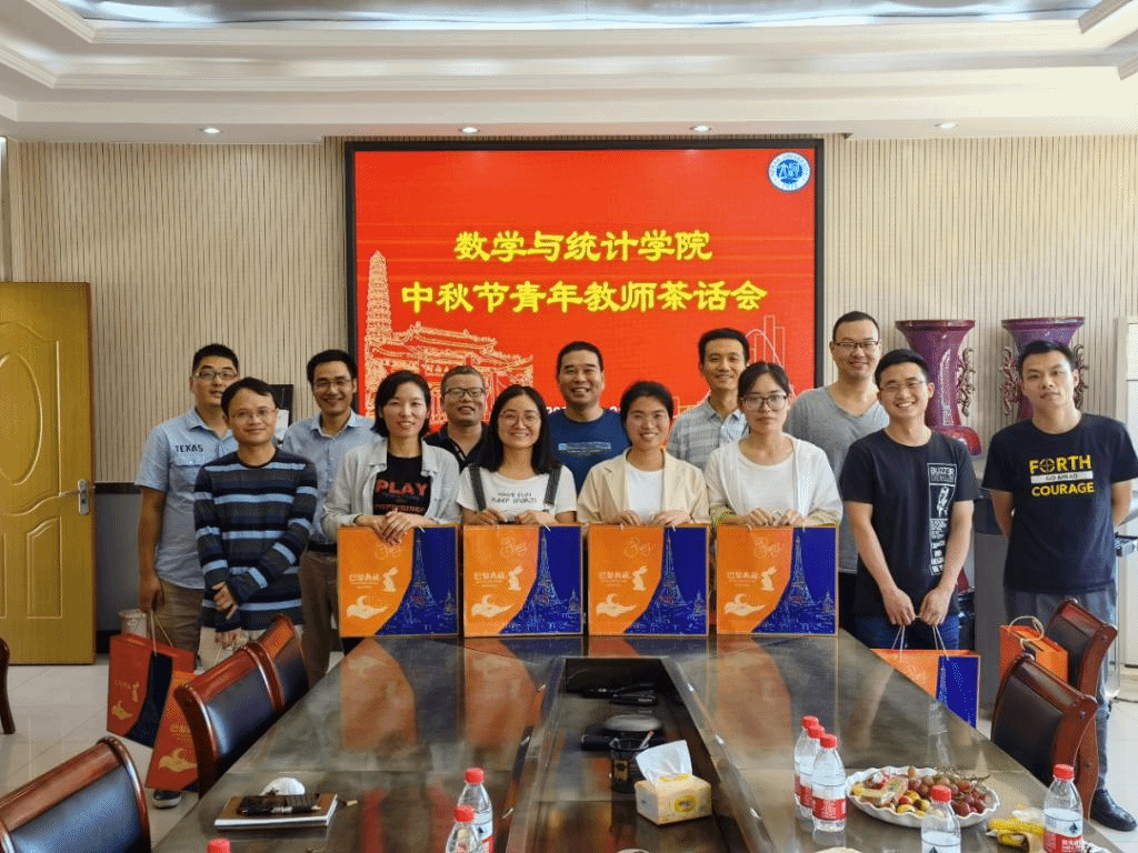 史富强和韩小森代表学院,为与会的每一位青年教师发放了中秋月饼并合影留念,茶话会在一派温馨祥和的氛围中结束。