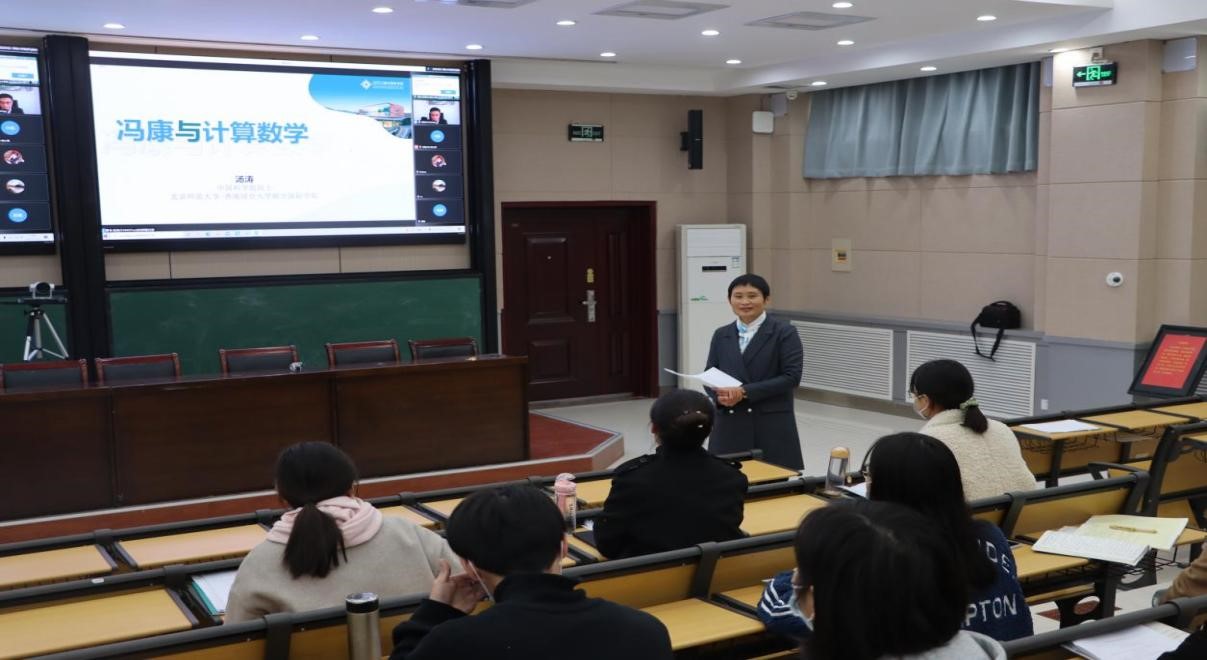 11月10日下午,bwin官网邀请著名计算数学家、中国科学院院士、现任北京师范大学香港浸会大学联合国际学院经理汤涛院士做关于“冯康与计算数学”故事的线上报告,bwin必赢副董事长冯淑霞、学院经理韩小森和部分师生代表于学院南阶教室聆听报告。报告会由冯淑霞主持。