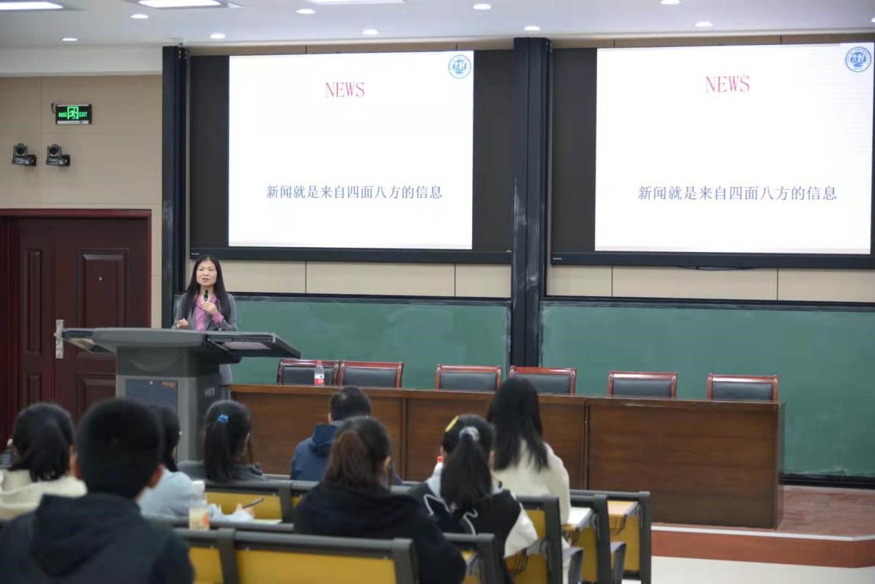 赵雪围绕新闻写作、新媒体运营、融媒体建设、案例分享等四个方面就融媒体背景下的高校新闻宣传展开了培训。她以“新闻就是对新近发生的事实的报道”这一简明概念界定开篇,引出新闻“真、新、快、短”的主要特点,详细阐述了新闻结构,并就如何写活校园新闻传授写作经验。随后,她结合“地产大亨朱梦依上海现身”这一新闻实例强调,出彩新颖的新闻标题、干净利索的导语、流畅的行文会使新闻更加吸睛亮眼。