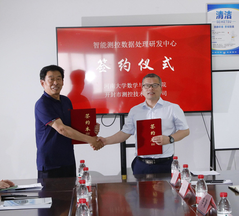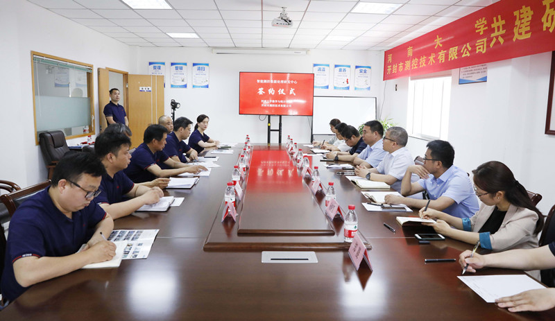 葛学海和韩小森共同签署了共建研发中心的合作协议,史富强为实习教学基地授牌。随后,大家参观了开封测控研发中心及部分生产车间。