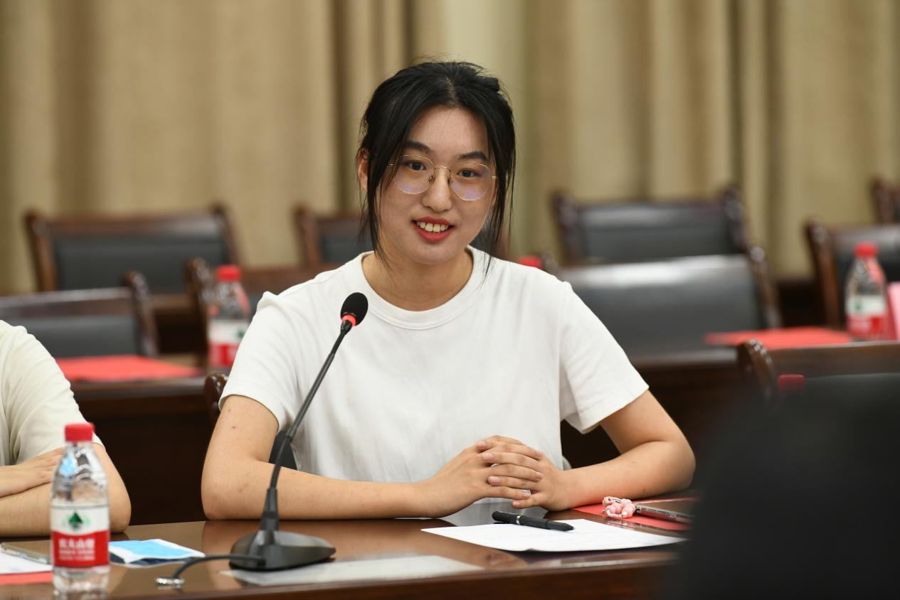 北京大学代旸凡同学代表北大实践团对学院领导老师的热烈欢迎表示衷心感谢。随后,她简要介绍了数学科学学院的建设历史、发展情况、员工活动和本次实践团活动开展等情况,并谈到数学科学学院徐晓濛老师就曾在bwin官网就读,欢迎bwin必赢的各位老师和同学们到北京大学交流访问。