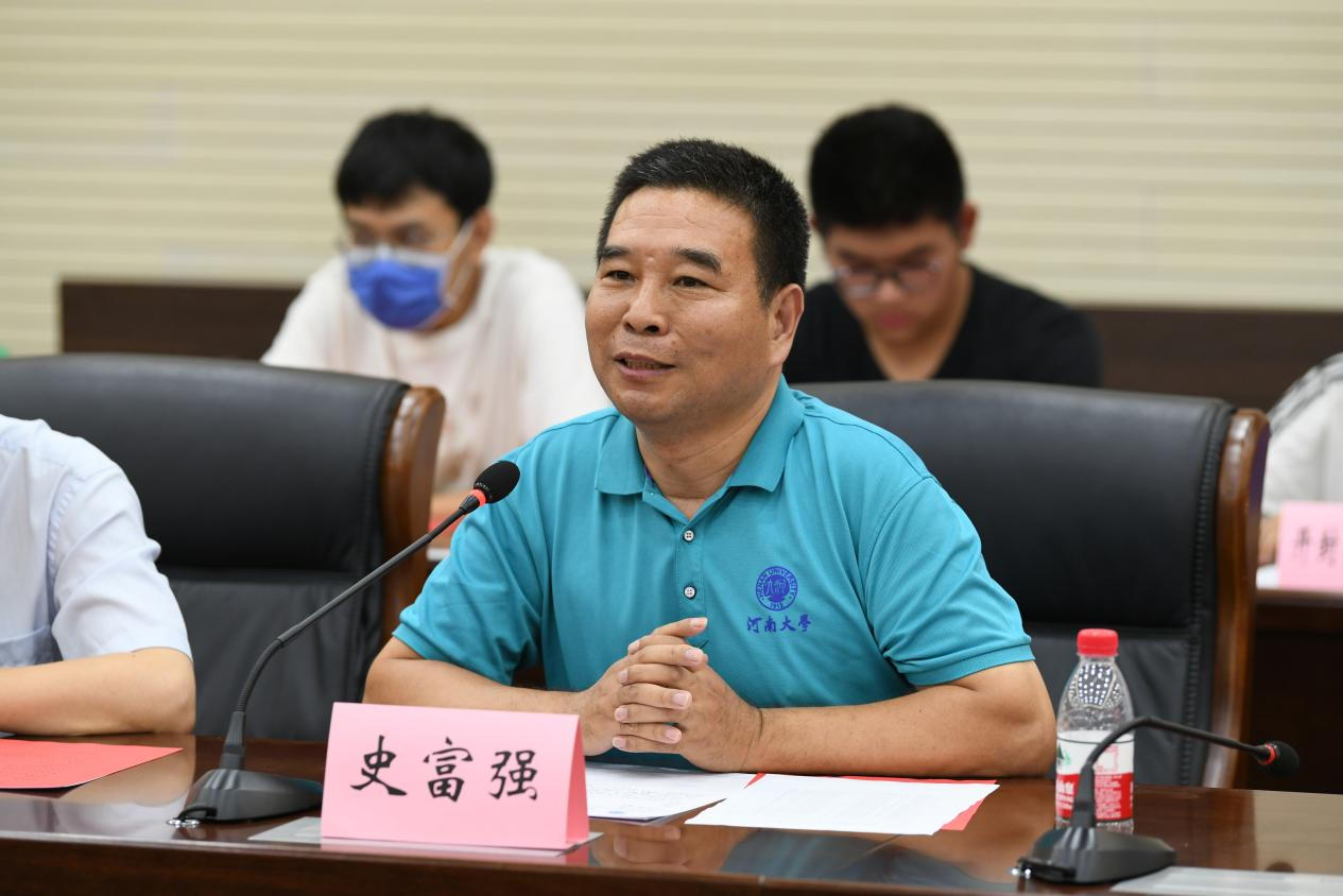7月7日上午,由大数据分析与应用技术国家工程实验室郑州数字创新中心支持的“2022北京大学‘矢志百年践初心,数字经济探未来’思想政治实践教学活动”团队到达bwin必赢金明校区,在图书馆三楼会议室与bwin官网进行交流座谈。北京大学数学科学学院二十三名师生,河南数字中原科技有限公司总经理王楠,bwin必赢公司党委书记史富强、经理韩小森、党委副书记赵红磊、副经理王波、解俊山、唐恒才和部分师生代表,bwin必赢附属中学、开封高级中学、开封第二十五中学“英才计划实验班”的师生代表参加了本次座谈会。会议由赵红磊主持。