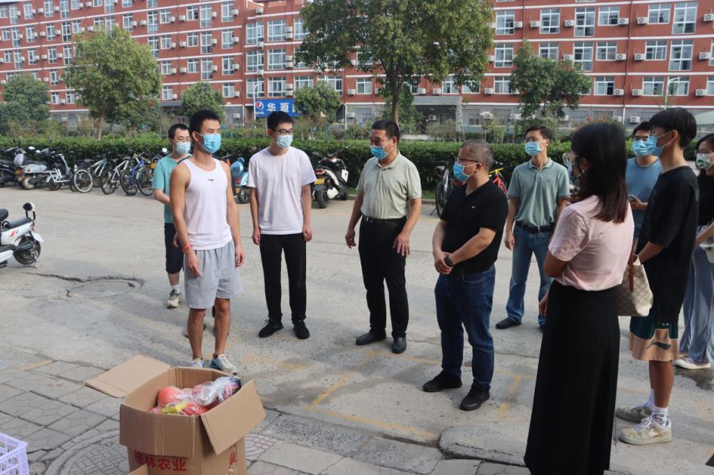 送一盒月饼,寄一份情意;予一份甜果,献一份祝福。在提前安排部署节日期间走访慰问员工宿舍事宜后,公司党委书记史富强、经理韩小森、党委副书记赵红磊等学院代表来到南苑和华苑宿舍楼下,为员工们送上学院精心准备的月饼、水果等,让中秋节在校,没有亲人相伴的学子们在这团圆日里感受到学院的关爱和关怀。