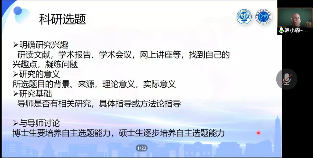 为全面推进研究生教育工作,帮助2022级研究生尽快了解和适应新环境,顺利完成角色转换,快速融入研究生生活,bwin官网以线上形式开展了2022级研究生入学教育系列活动。9月5日和6日,bwin官网经理韩小森、党委书记史富强分别就“如何做一名合格的研究生”和“院史院情教育”两个主题开启研究生入学教育。