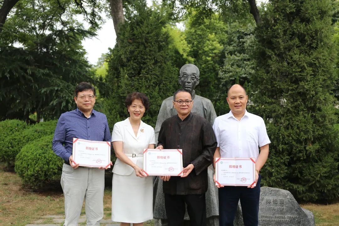 刘波向王正营、焦俊洲、王致祥颁发捐赠证书。