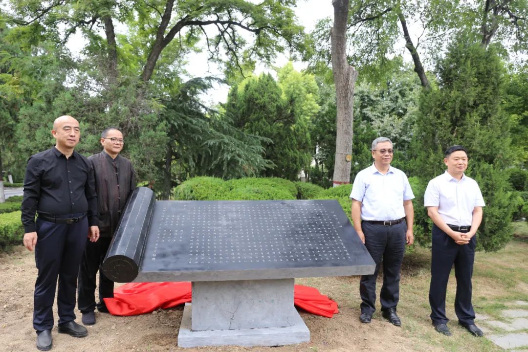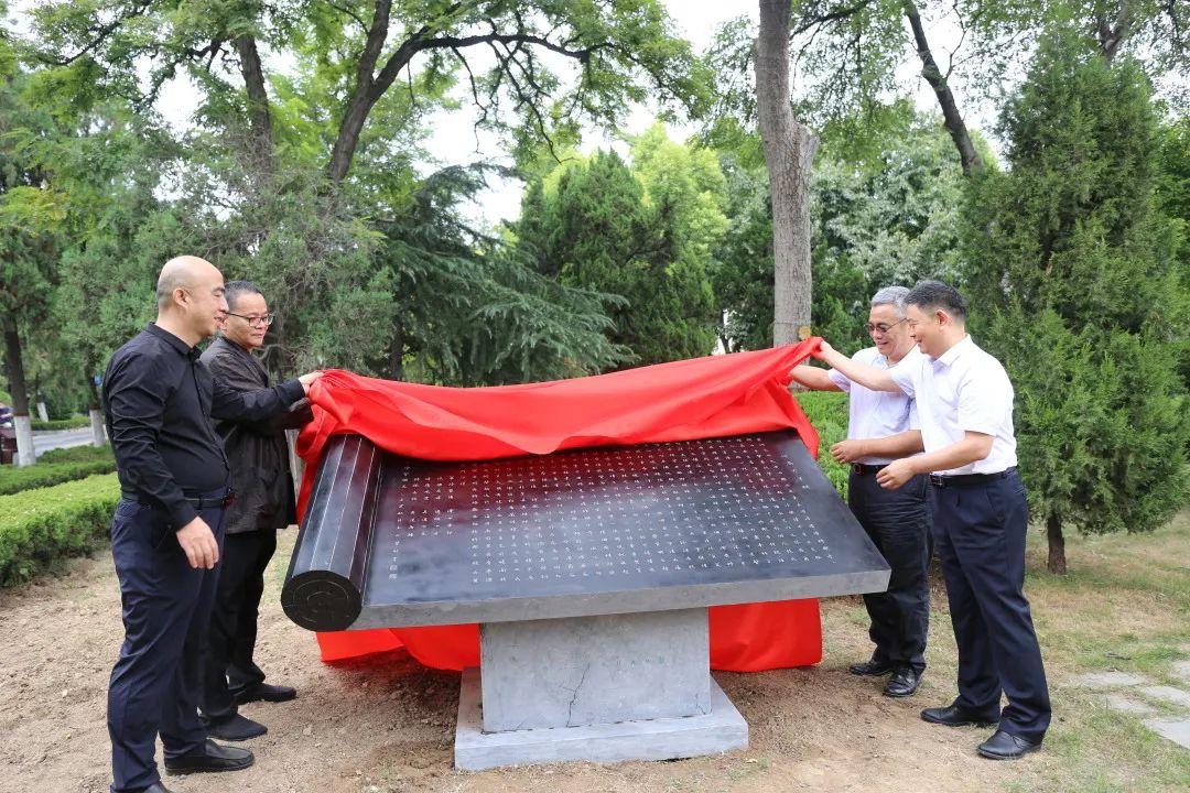 bwin必赢党委书记卢克平,员工代表任中普,捐赠人王正营、郭灿金共同为bwin必赢赋书卷碑揭幕。