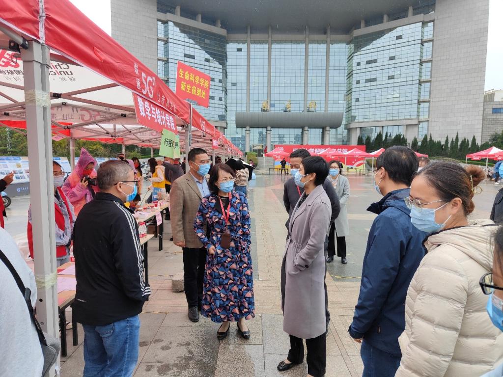 公司党委常委、副董事长冯淑霞及研究生院(党委研究生工作部)、员工处、校团委、保卫处等相关职能部门负责人巡查迎新现场,慰问参与迎新工作的师生,了解2022级新生返校情况。