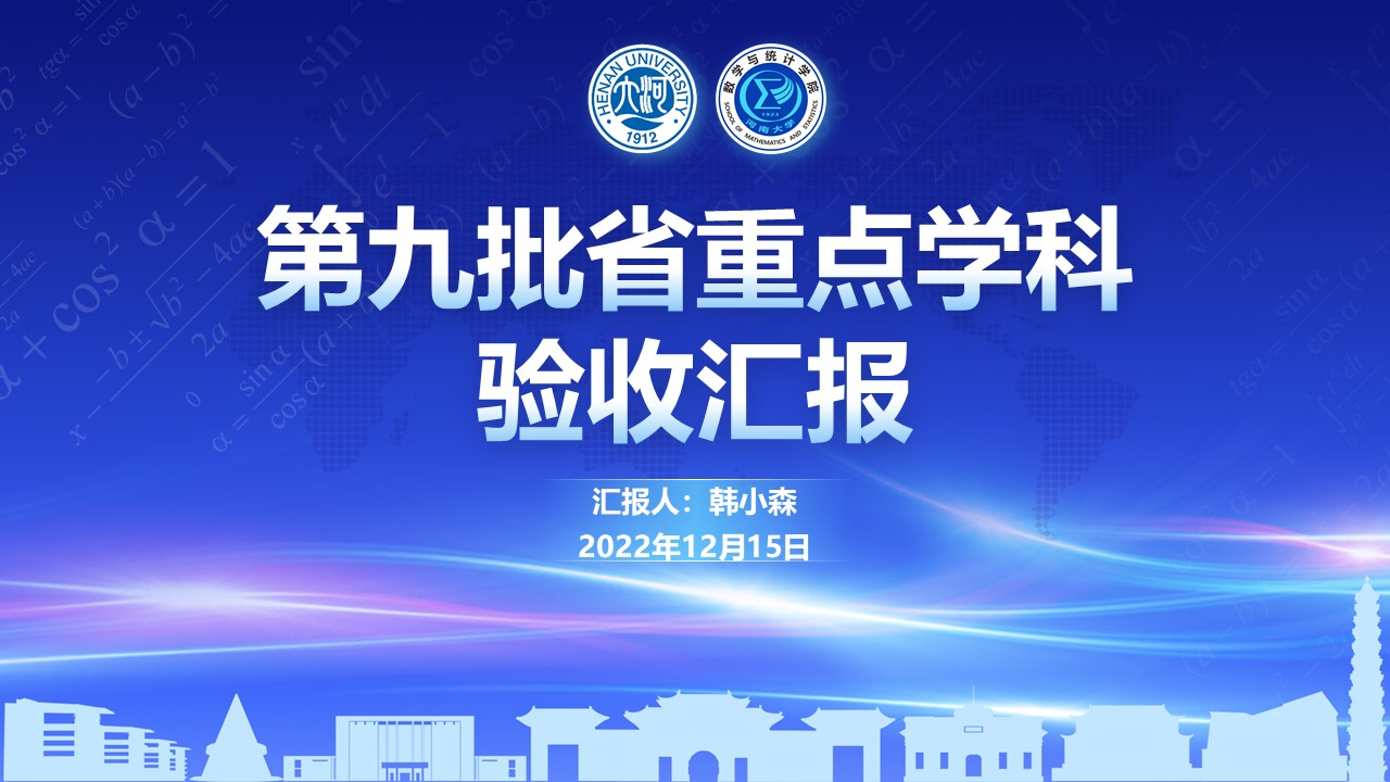 根据河南省教育厅《关于对第九批河南省重点学科进行终期验收的通知》(教办研〔2022〕358号)的文件精神,12月15日下午,bwin官网举行了第九批河南省重点学科数学学科终期建设情况自评会。受邀参加自评会的校外专家包括:首都师范大学吴可教授,宁波大学屈长征教授,江西师范大学杨健夫教授,北京工业大学王术教授。bwin官网学术委员会部分成员和教师代表参加了此次会议。会议采用线上线下结合方式进行。
