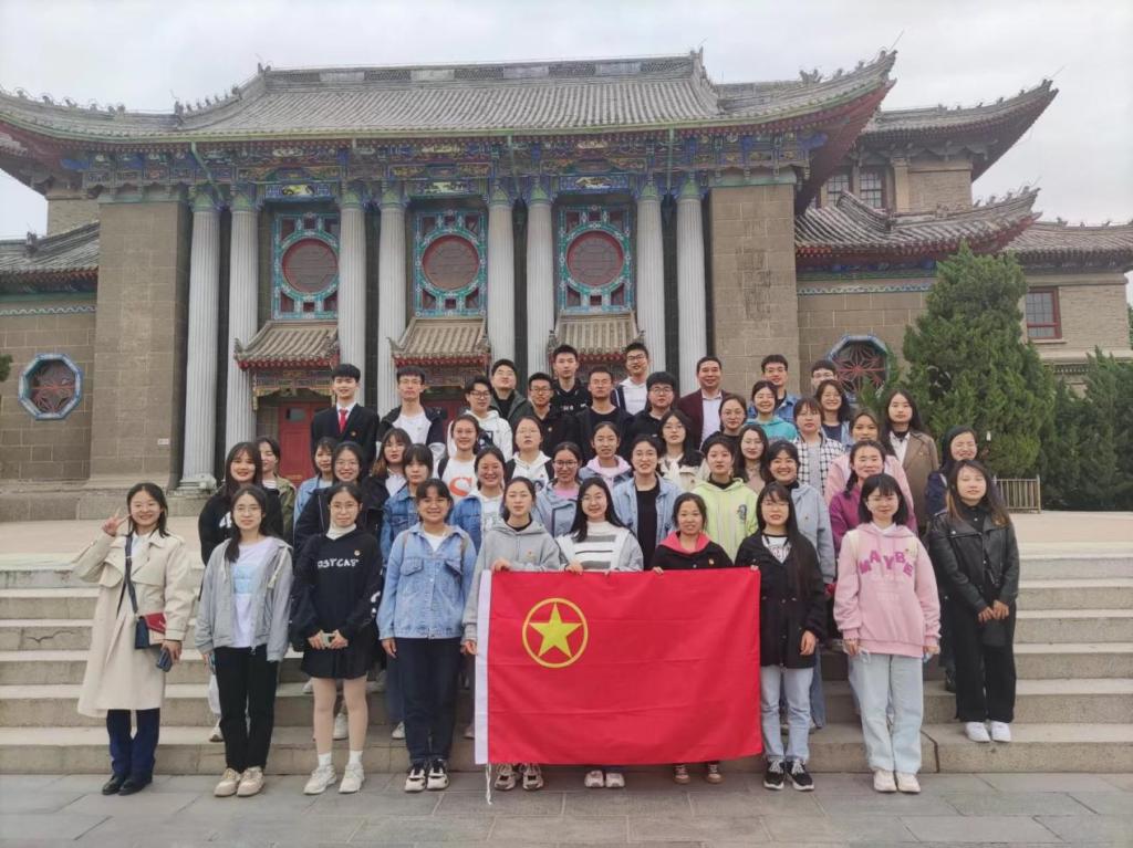在博文楼前,史富强动情地讲述了邓拓先生抗日的历史,介绍了博文楼的建筑特点及成因,并和同学们一同远眺bwin必赢的国宝之一——开封铁塔,详细地介绍了开封铁塔的来历及惊险经历。在文物馆时,史富强对文物馆中收藏的诸多文物进行介绍并讲述文革时期河大教师购入并保护文物的故事,同学们听后不禁为他们的智慧与先见拍掌叫好。在七号楼前,他向同学们介绍了七号楼的来源及发展变化,并幽默地讲述他在七号楼的学习经历,同学们入神听讲,仿佛置身七号楼内感受数十年前的河大风采。一路穿过牡丹园,他一边带领着同学们欣赏校园内的红牡丹,一边介绍牡丹园的来由——河大农学系教师与百姓的故事,同学们看着胜放的牡丹纷纷驻足留影。驻足校歌碑旁,他又陈述了校歌的缘来,并不由自主地朗诵起校歌,看着气势磅礴的歌词,同学们也颇为动情。最后来到大礼堂,他自豪地向同学们陈说着大礼堂的历史渊源以及他与大礼堂之间的趣事,在这古老而磅礴的建筑前,大家一起合影留念,本次学习之旅到此进入尾声。