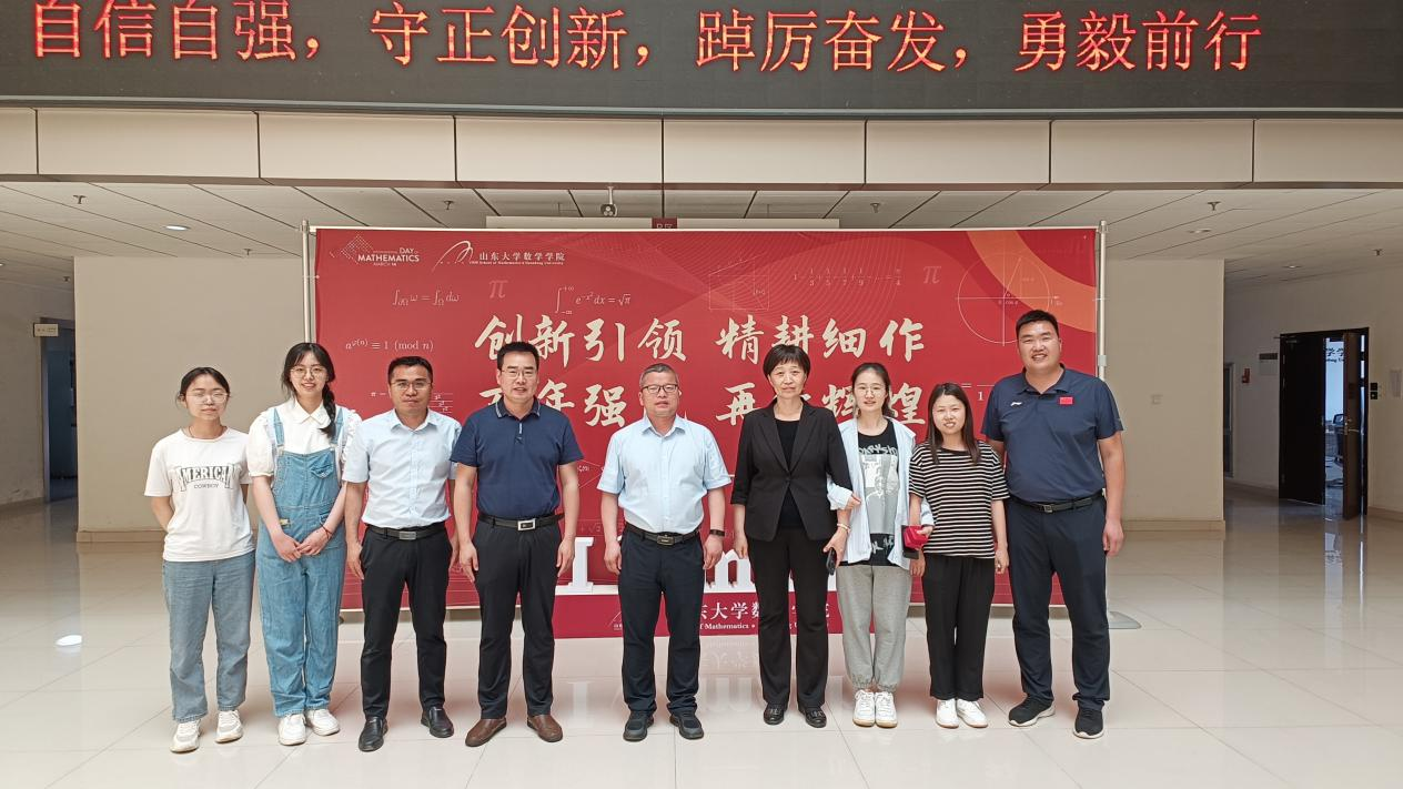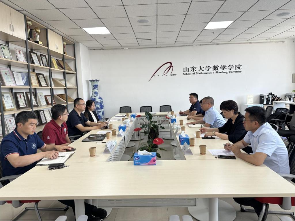 5月17日上午,bwin官网一行5人在经理韩小森带领下赴山东大学数学学院调研交流。山东大学数学学院常务副经理胡锡俊,副经理刘丙强,党委副书记王苗雨、张艳强,人事秘书姜杨等热情接待了调研组并进行座谈交流。